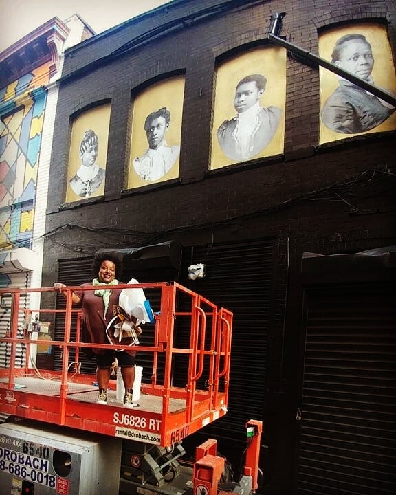 It’s funny because almost thirteen years later I would do a mural on the same block. It is three images of Black women who had their photos taken in downtown Newark. This mural to me is an intervention that demonstrates not only the long history of African Americans in Newark prior to the Great Migration. Often Black Newarkers are depicted as coming here during the Great Migration but we have been here since the American Revolution and before. An enslaved man Cudjoe actually “won” his freedom during the American Revolution and was “given” a house near where the old Star Ledger building is today.