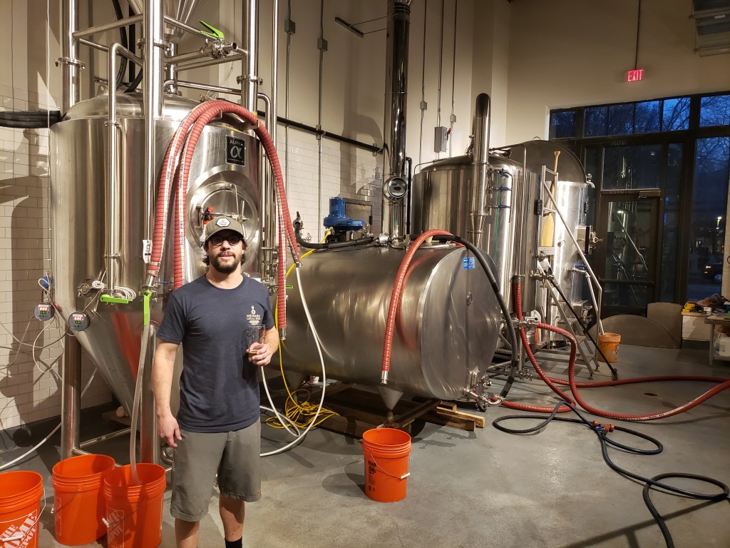 Shuffling through the crosswalk and past the entrance to the main lobby, I peered inside several glass doors into what resembled a sort of cozy factory on the first floor. There were huge steel kettles and stacks of metal barrels set beside warm lights, inviting wooden counter-tops, and people sipping from glasses of amber. Just as I approached an open stool, the man behind the counter asked if I was a local. When I responded “Yes,” he jestfully asked, “What the hell had taken you so long to come in?” Within the next few minutes, I came to learn that this inviting, casually dressed, comedically tactful bartender, was actually one of the owners, Stephen Hughes.