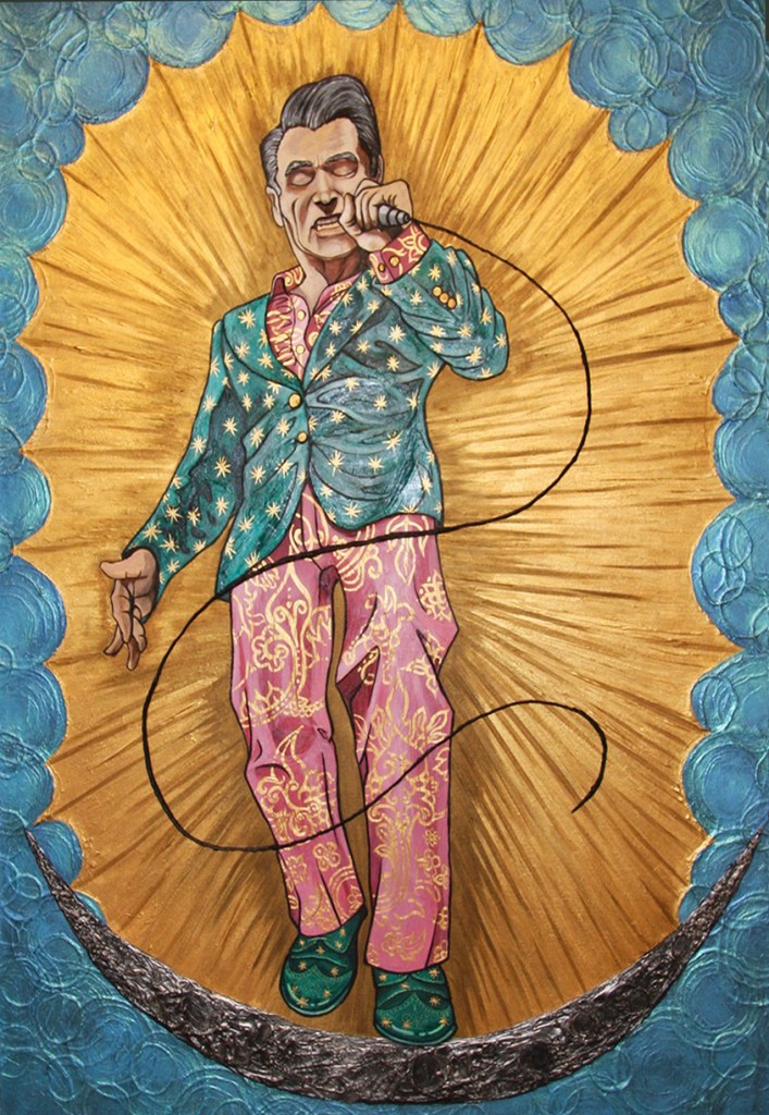 Vázquez: Eclectic for sure. I’m a multimedia artist. A lot of my work is mixed media with a strong focus on painting because I love doing it all. If a piece includes sculpture, photography, drawing, painting, etc. I’m all in! My work for the most part is cynical, jaded, mixed with dark humor, and revolves around death in the most colorful way possible. It comes from the understanding that death is our constant companion and you must experience life to the fullest because there is no part two. My work has a lot of Catholic survivor influence. It also speaks on #decolonize themes. It is a tough struggle when your tribe is lost, your language and customs are completely gone—replaced by colonization. Often times Native Americans are either completely forgotten, fetishized, related to mysticism, and many more types of othering. It makes me so happy when I see cousins to the North and South that have their traditions in place and their languages intact. It makes me especially happy when I find out that words I grew up saying have indigenous roots. Part of that decolonization is rejecting certain descriptive labels. I’ve also have stopped participating in shows from galleries and curators who only remember my name in the months prior to September 15 to October 15 just because my name is Vazquez. “Are you Spanish?!” Not by choice. My work is most definitely me.