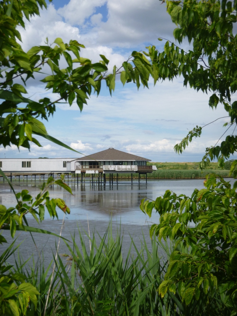 Our trek brought us through an abandoned 19th century settlement (intentionally overgrown and obstructed), across acres of water by way of narrow trails protruding into otherwise impassable wetlands through Richard DeKorte Park, marked with signs detailing native wildlife and a Superstorm Sandy-damaged visitor’s center haunting its landscape.