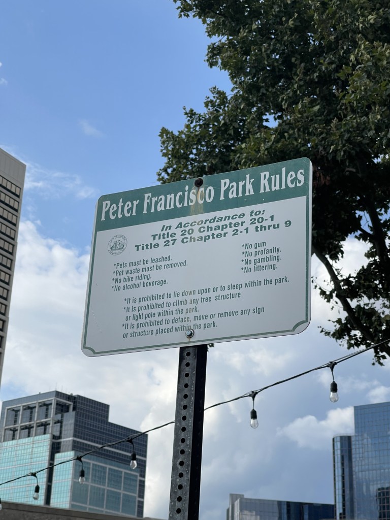- The city’s official website does not have an explanation of how to obtain a permit for entry to the park. A source on background said that the City Clerk told them that they could reach out to the Parks Foundation, who as an official matter does not have a purview over Peter Francisco Park, and that they would process the permit.