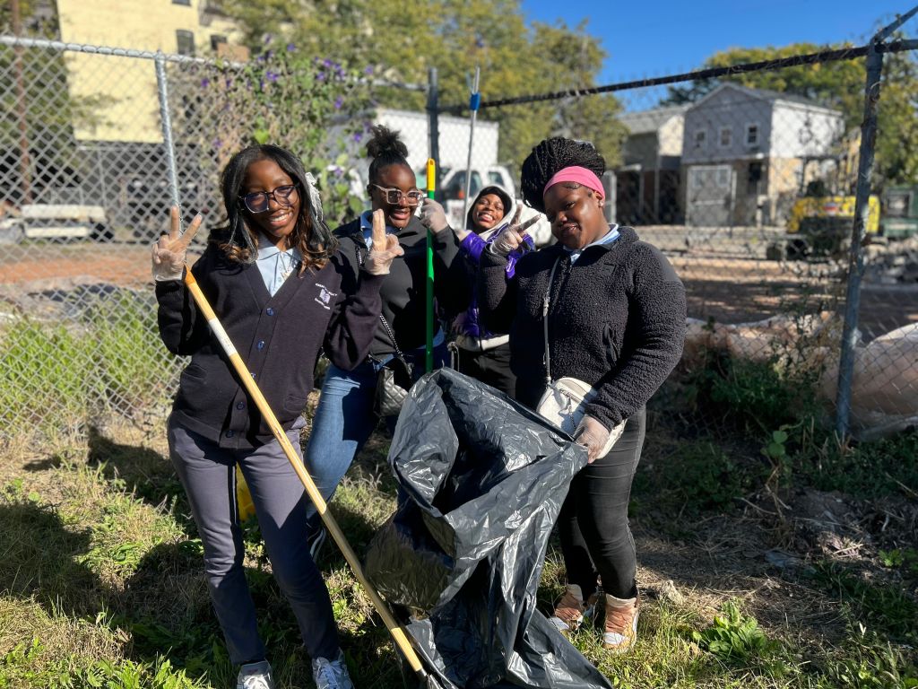 NEWARK, N.J. – Oct. 10, 2024: On October 10, twelve female students from Great Oaks Legacy Charter School (GOLCS) teamed up with Lincoln Park Coast Cultural District (LPCCD) to clean up Newark’s South Ward as part of the city’s ‘Slam Dunk the Junk’ initiative. The students helped clean up a vacant lot on Astor Street and the surrounding area by picking up trash, raking leaves, and revitalizing the space to enhance their neighborhood.