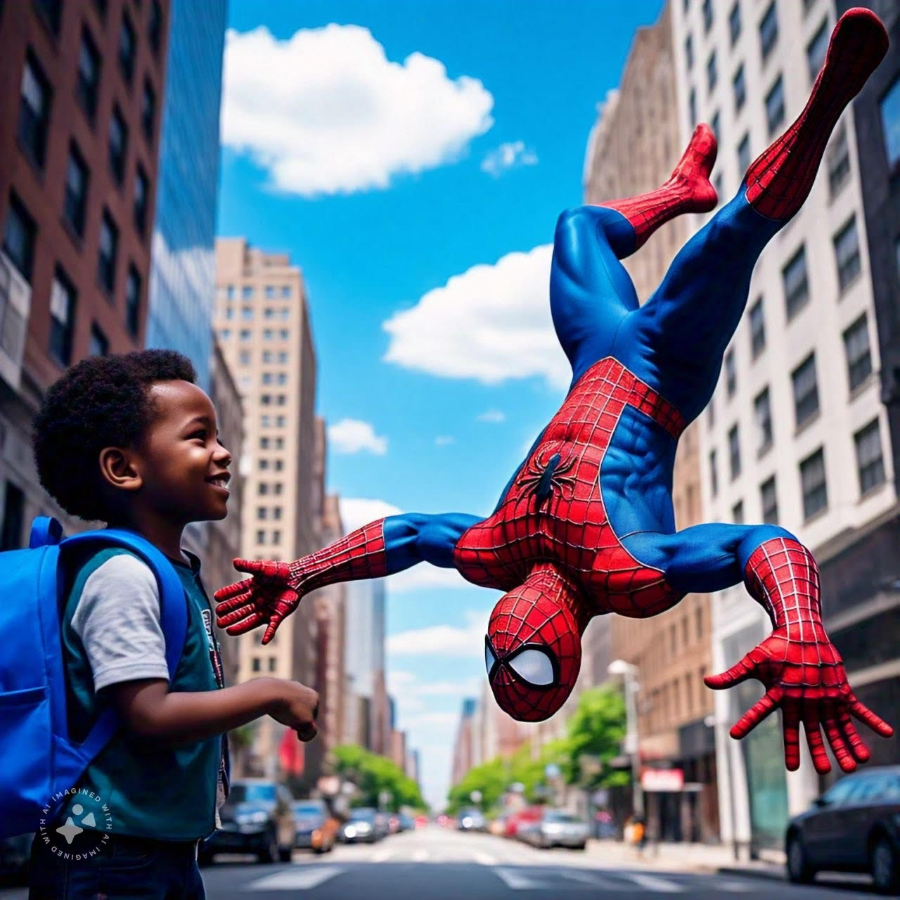 They were walking at a slower pace than me. And they were in my way. So I walked a little faster to make my way around them. As I passed, whim took over. I turned back to the little boy and thrust my hand out, pretending to shoot out some imaginary web,